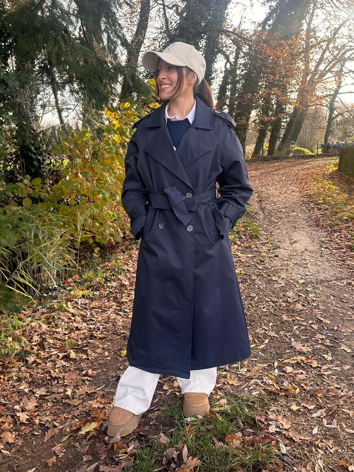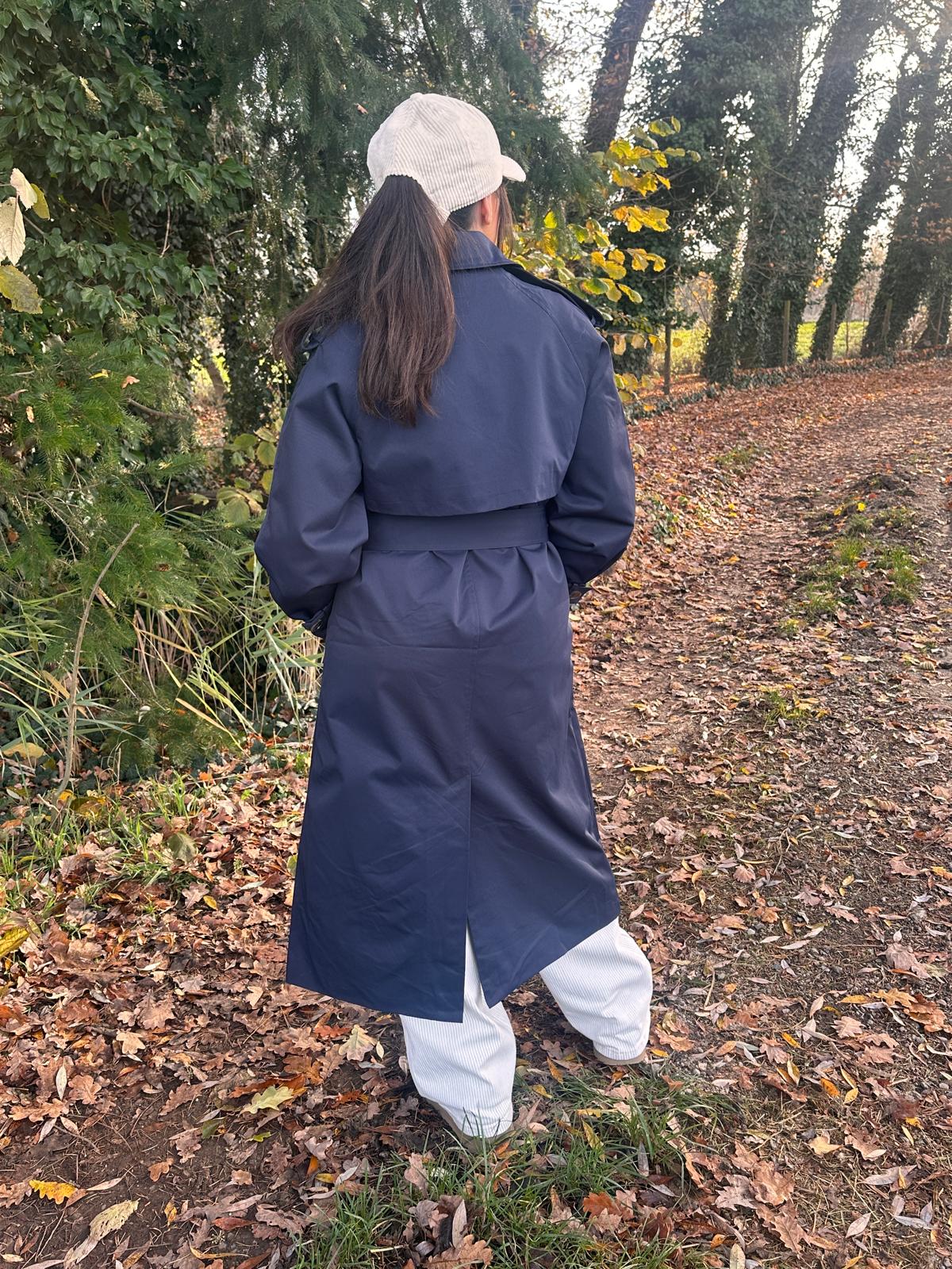 Le conseil Bobby & Co: Associe le Trench BELLEVILLE bleu nuit, à une chemise blanche et un pantalon large pour un look city chic, ou à une robe fluide pour une allure parisienne irrésistible.