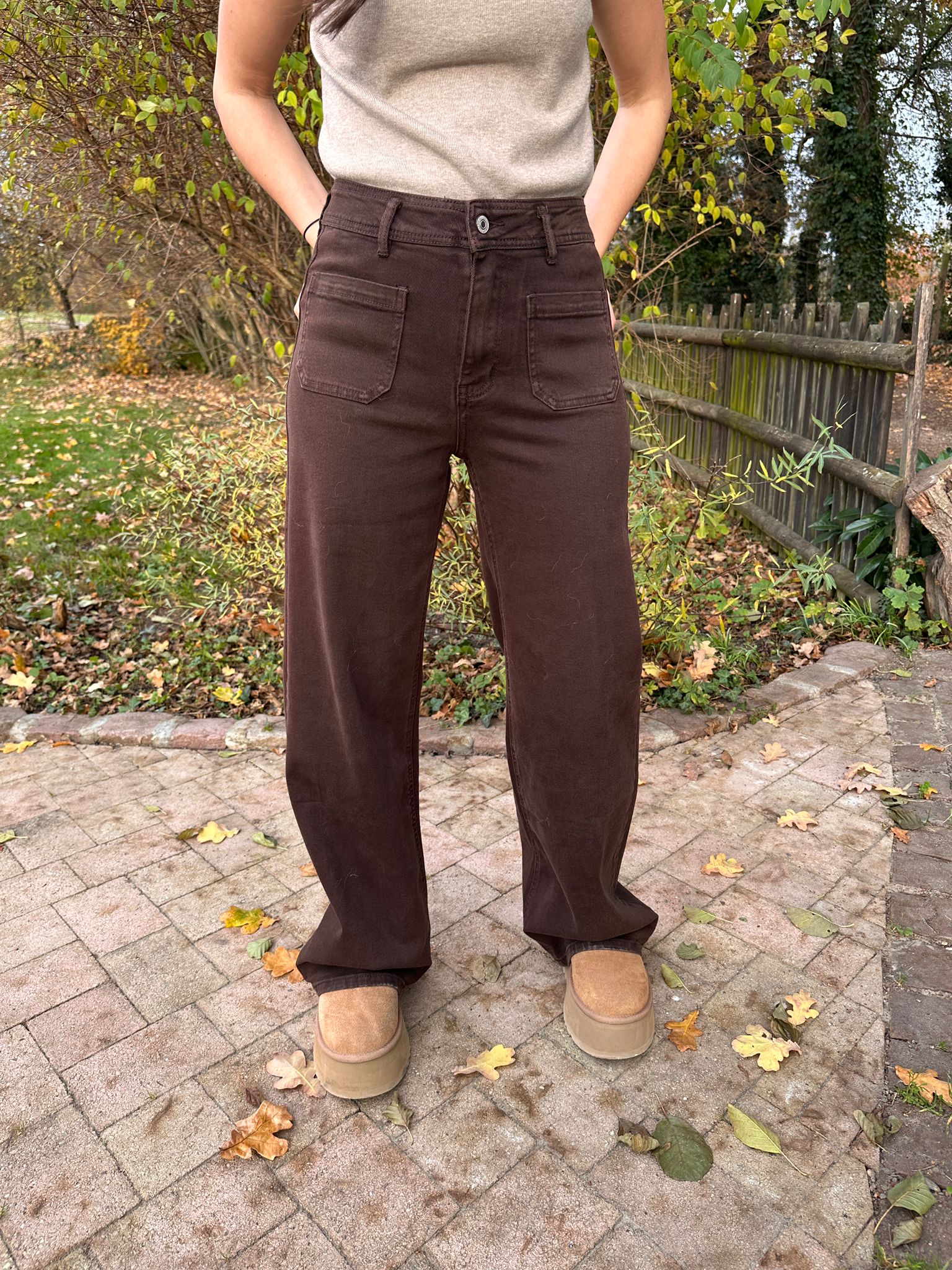 FLORENCE Chocolat - Pantalon coupe Wide Leg