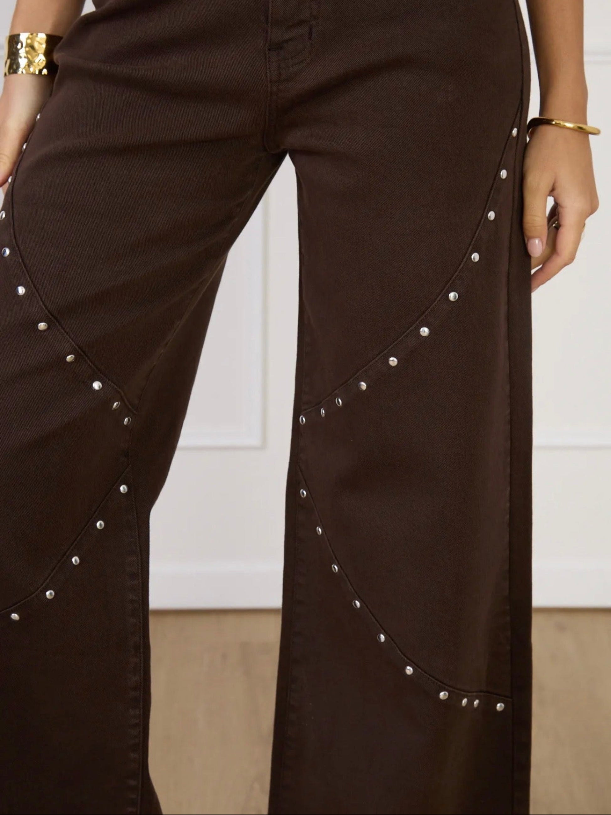 PHENIX - Pantalon flare chocolat clouté