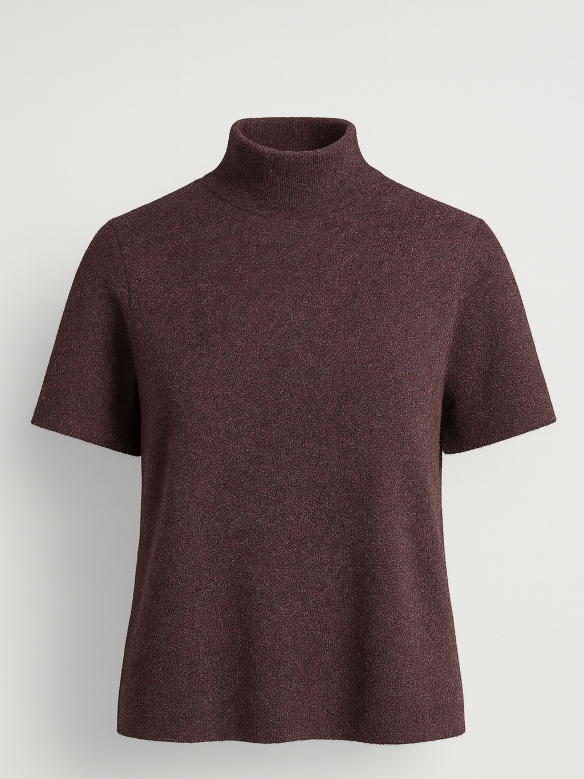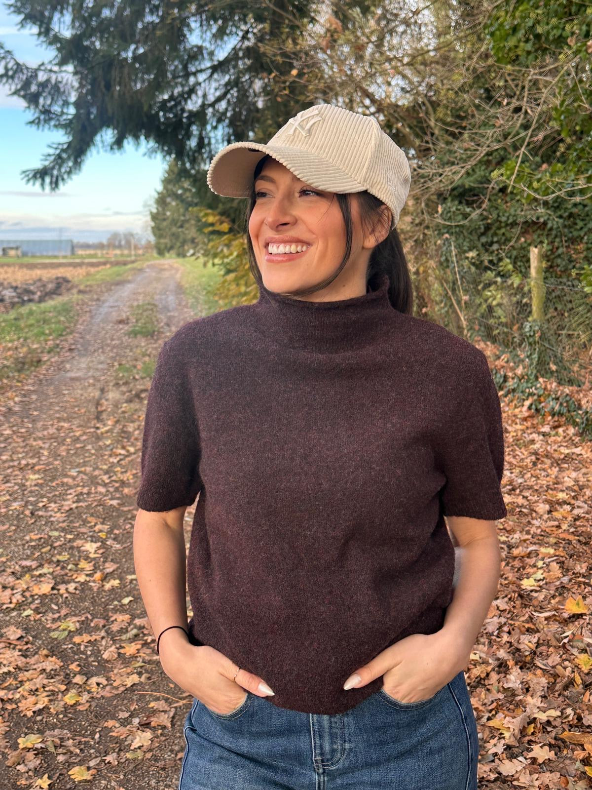 Le PRAGUE est la pièce chic et minimaliste qu'on adore porter en mi-saison. Avec son col montant et ses manches courtes, il combine élégance et confort tout en mettant en valeur la silhouette. Sa maille douce couleur prune apporte une touche raffinée et féminine, idéale pour un look casual chic.