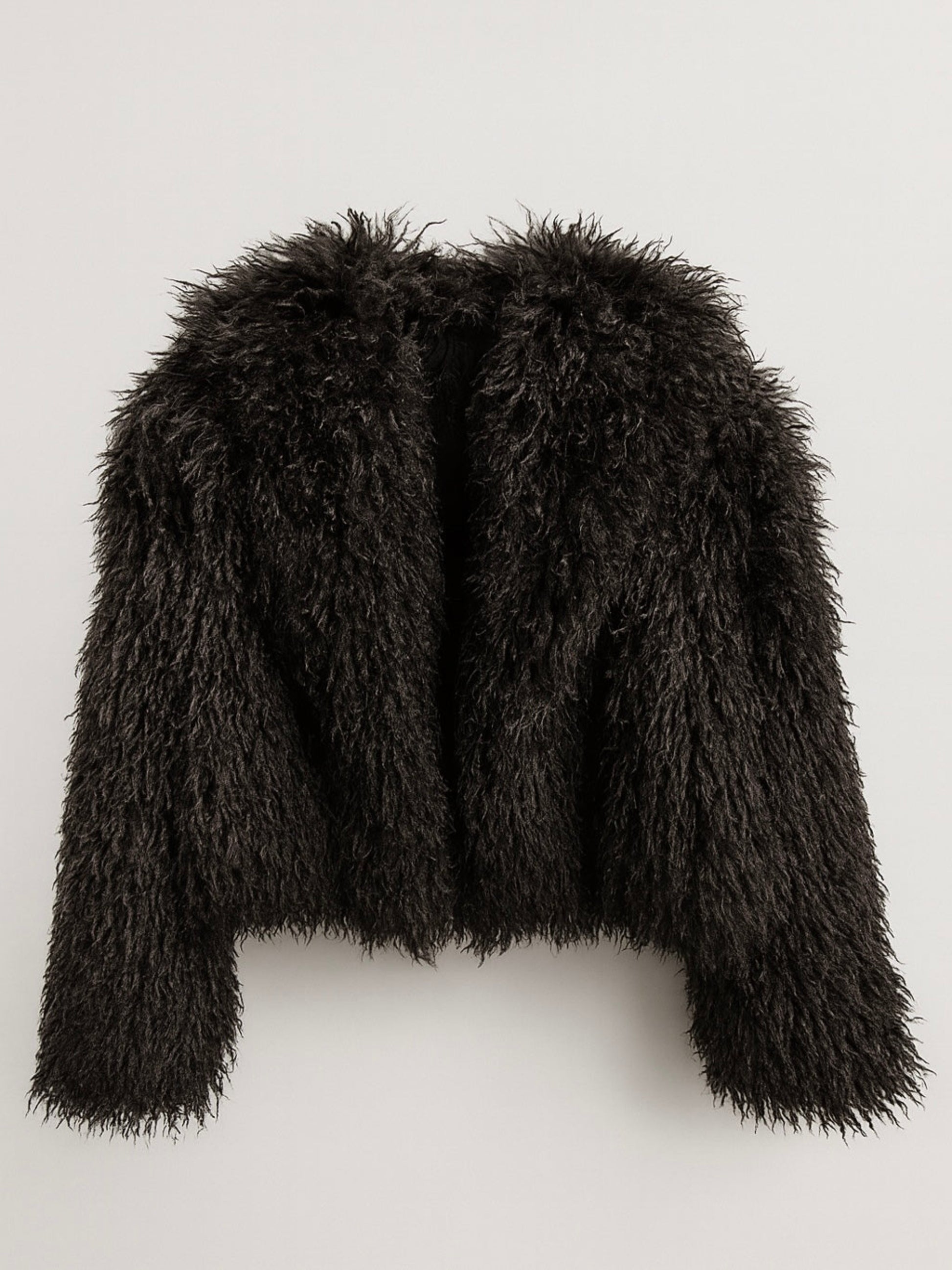 Veste en fausse fourrure à poils frisés. La veste VERBIER incarne la chaleur et l'audace de l'hiver chic. Avec sa texture bouclée et son volume élégant, cette veste en fausse fourrure apporte une touche de sophistication instantanée. Douce, enveloppante et ultra tendance, elle élève n'importe quelle tenue en un look digne d'une icône de mode.